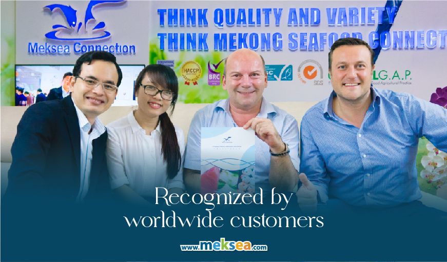 Besides that, Meksea always maintains presence at major seafood events both domestically and internationally, such as VIETFISH (Vietnam), Seafood Expo North America (Boston, US), Seafood Expo Global (Barcelona, Spain), China Fisheries and Seafood Expo (Qingdao, China), Thaifex (Bangkok, Thailand), F&B Expo (Singapore), Seafood Expo Asia (Singapore), and so on. At each seafood event, Meksea introduces customers to Vietnamese keypoint seafood products that are favored by many markets, such as pangasius, shrimp, tuna, tilapia, barramundi, mahi-mahi, squid, octopus, clam, Indian mackerel, VAT products, etc. Especially, through these expos, Meksea has the opportunity to connect and learn from seafood experts, international friends, and customers, together discuss and address difficulties, concerns, and timely grasp global seafood trends and demands. From there, we can formulate the best sales policies for specific periods and production timeframes to ensure timely delivery according to the customer’s planned schedule.